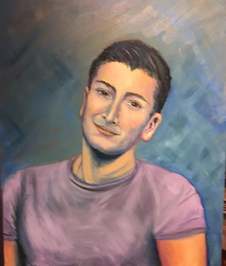 self portrait in oils of me, at 29, from a photo taken by Greg